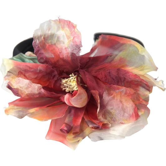 Dolce & Gabbana Rose Pink Silk Floral Black Tiara Women Hairband Diadem