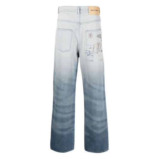 Boutique Moschino Blue Round Neckline Long Sleeves Blouse Top