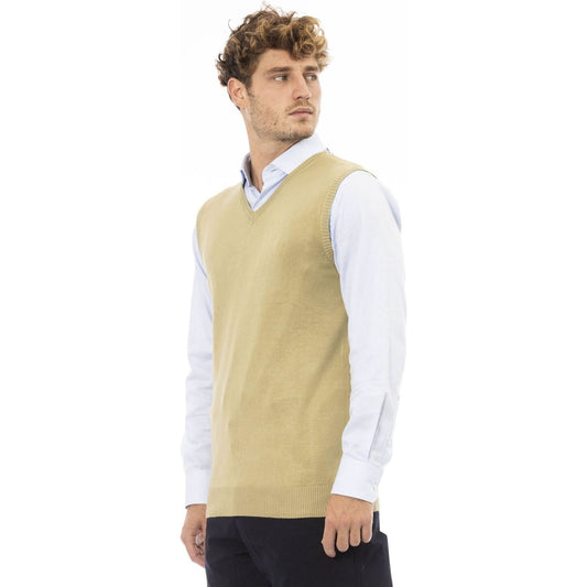 Alpha Studio White Long Sleeves Crewneck Pullover Sweater