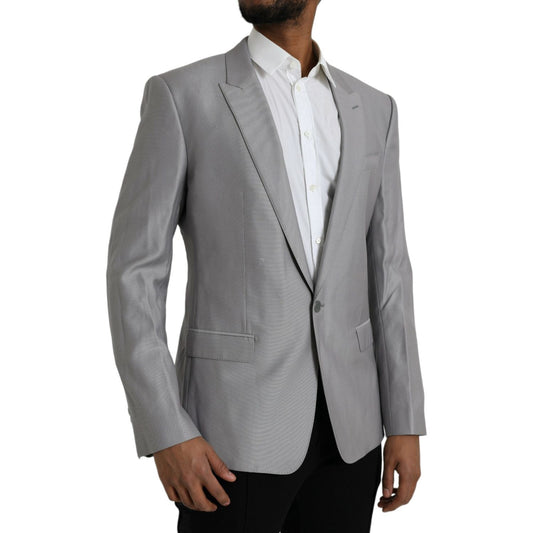 Dolce & Gabbana Gray Wool Silk Slim Fit Jacket Blazer
