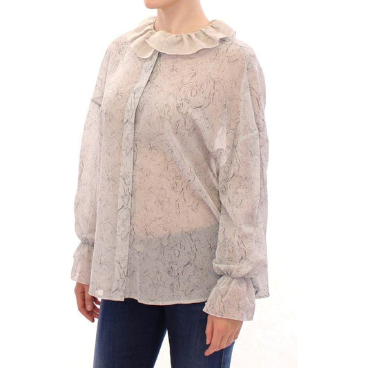 Andrea Incontri White Cotton Checkered Shirt Top