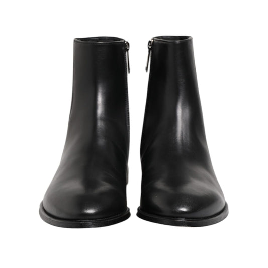 Dolce & Gabbana Black Chelsea Leather Mid Calf Boots Shoes