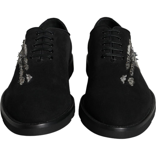 Dolce & Gabbana Black Leather Crystal Dress Formal Shoes