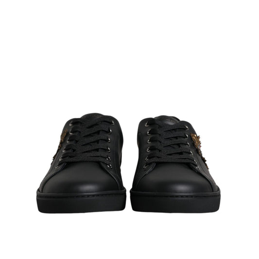 Dolce & Gabbana Black Leather Heart Embellished Sneakers Shoes