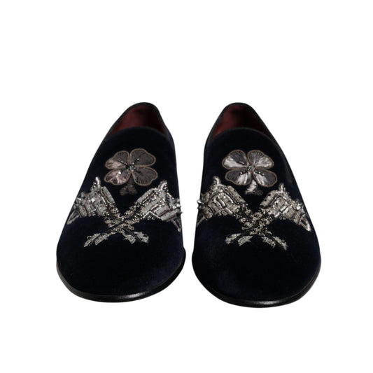 Dolce & Gabbana Blue Sequined Loafers Formal Dress Shoes