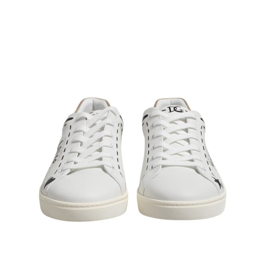 Dolce & Gabbana White Leather Printed Low Top Sneakers Shoes
