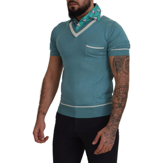 Dolce & Gabbana Blue Silk Polo Top Mens V-neck T-shirt