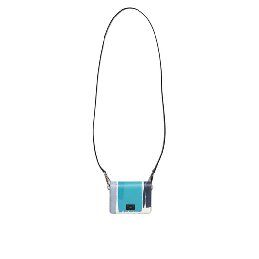 Dolce & Gabbana Black Horse Leather Zip Logo Shoulder Neck Strap Wallet