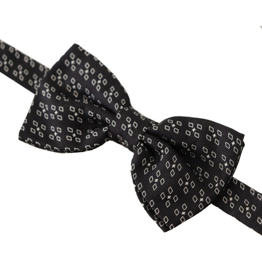 Dolce & Gabbana Black White Round 100% Silk Neck Papillon Tie