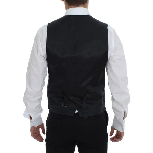 Dolce & Gabbana Black Striped Wool Single Breasted Vest