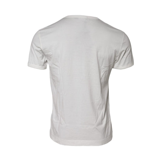 Dolce & Gabbana White Printed Round Neck Top Cotton T-shirt