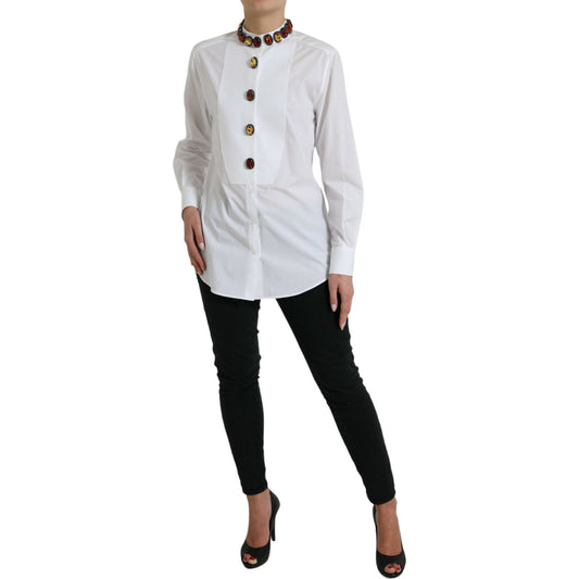 Dolce & Gabbana White Cotton Crystals Embellished Shirt Top