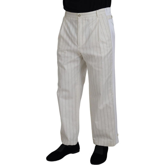 Dolce & Gabbana White Cotton Striped Formal Pants