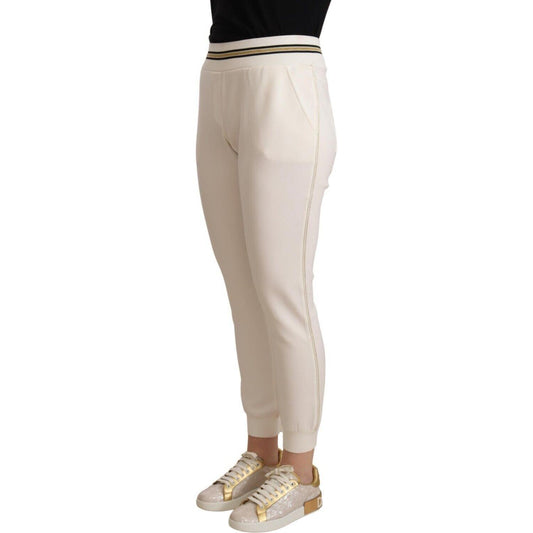 Patrizia Pepe White Polyester Mid Waist Jogger Pants