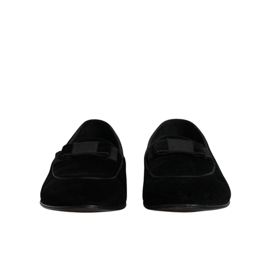 Dolce & Gabbana Black Velvet Loafers Formal Men Dress Shoes