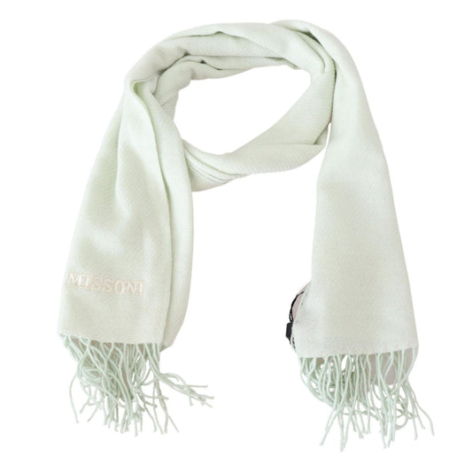 Missoni Light Green Pattern Cashmere Unisex Wrap Fringes Scarf