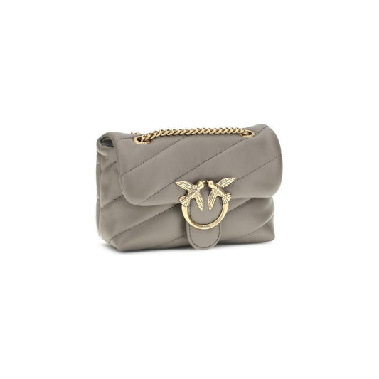 PINKO Gray Calf Leather Bos Taurus Shoulder Bag