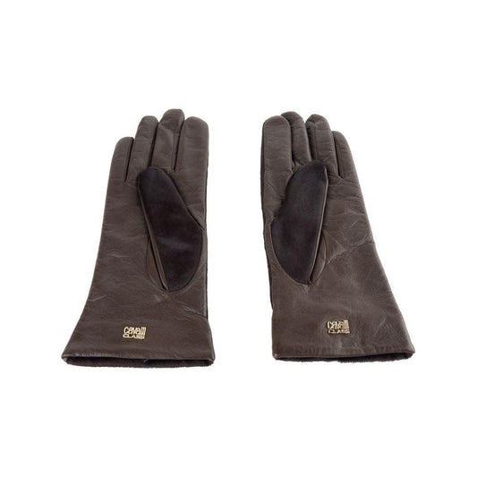 Just Cavalli Brown Leather Logo Bronze Rustic Metal Buckle Belt