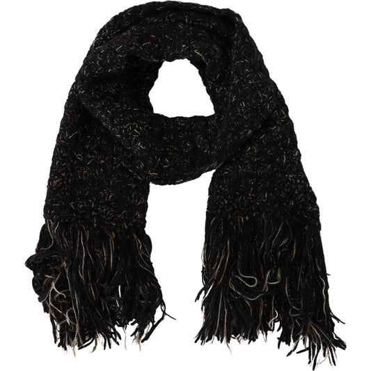 Dolce & Gabbana Black Wool Knitted Wrap Foulard Fringe Scarf