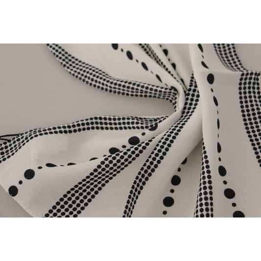 Dolce & Gabbana White Dotted Stripes Square Handkerchief Viscose Scarf