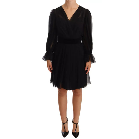 Dolce & Gabbana Black Silk Tulle Long Sleeve V-neck Dress