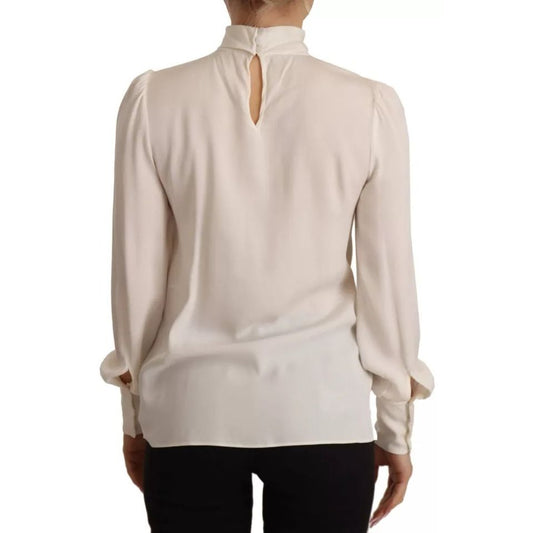 Dolce & Gabbana Off White Silk Long Sleeve Turtle Neck Top