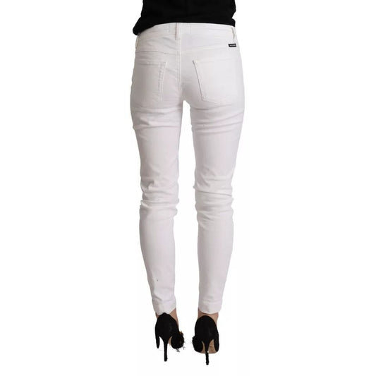 Dolce & Gabbana White Cotton Denim Pretty Slim Fit Jeans