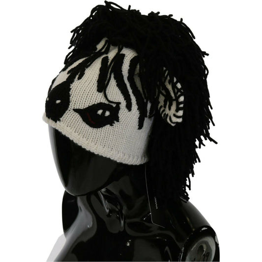 Dolce & Gabbana Black White Knitted Cashmere Animal Design Hat
