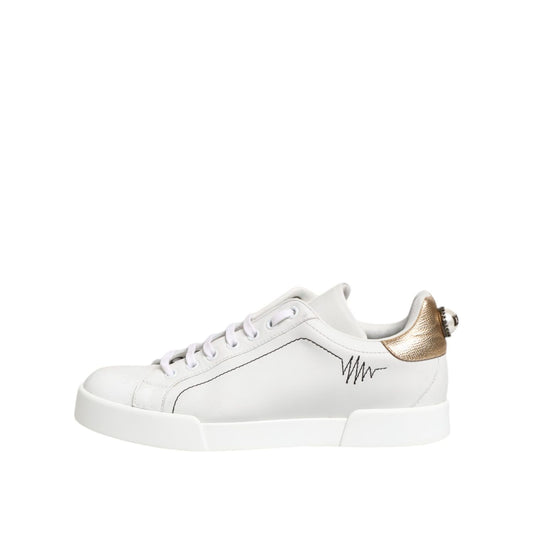 Dolce & Gabbana White Gold Leather Low Top Sneakers Shoes