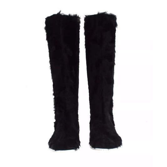 Dolce & Gabbana Black Xiangao Lamb Fur Leather Boots Shoes