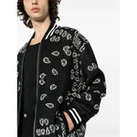 black/white cotton knitted construction paisley print striped edge band collar front zip fastening long sleeves two side slit pockets straight hem Bandana Piquet cotton bomber jacket Size and Fit - This piece fits true to size. We recommend you get your regular size. Model is 1,84m / 6ft 1in wearing size M