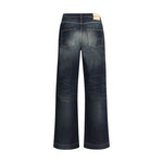 Vintage-effect Jeans by Alexander McQueen feature a five-pocket wide-leg style with belt loops at the waist. Contrasting yellow-orange stitching enhances the garment’s construction, while elaborately finished pocket edges add a touch of sophistication to the retro-inspired look.
