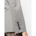notched lapels double-breasted blazer from ARMARIUM featuring light grey, virgin wool, notched lapels, double-breasted button fastening, chest welt pocket, two front jetted pockets, long sleeves, buttoned cuffs and straight hem. Double-breasted wool jacket Size and Fit - This piece fits true to size. We recommend you get your regular size. Model is 1,75m / 5ft 8in wearing size 40 (IT)
