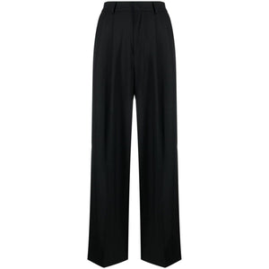 Alex wide-leg trousers from AZ FACTORY featuring black, virgin wool blend, high waist, belt loops, concealed front fastening, pleat detailing, side pouch pockets, two rear welt pockets, wide leg and pressed crease. Wide leg wool trousers Size and Fit - This piece fits true to size. We recommend you get your regular size. Model is 1,75m / 5ft 8in wearing size 36 (FR)