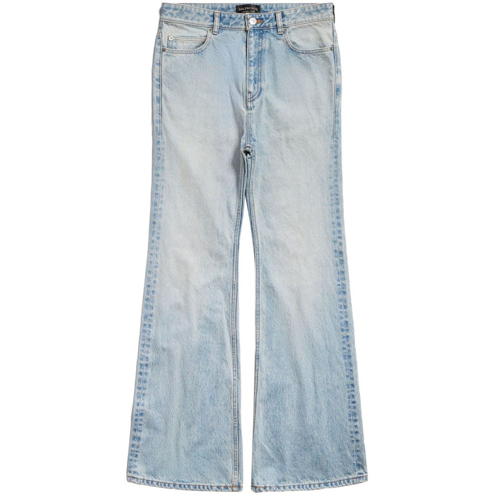 light blue cotton high-waisted belt loops classic five pockets concealed fly and button fastening logo patch to the rear wide leg We've partnered with Good On You — an independent agency that rates how brands perform in relation to their impact on the planet, people and animals, with a multi-criteria rating simplified to a five points scale. In order to be awarded our conscious label, larger brands need to score a minimum of four out of five ('Good'), while smaller brands must score at least three out of five ('It's a start'). This item comes from a brand rated four out of five ('Good') by Good on You at the time it was added on FARFETCH. Please note, this is a brand-level rating and does not guarantee that this product is made with conscious materials. Learn more about what makes a product Conscious on our Conscious Criteria page Flared denim jeans Size and Fit - This piece fits true to size. We recommend you get your regular size. Model is 1,75m / 5ft 8in wearing size 27 (WAIST CM)