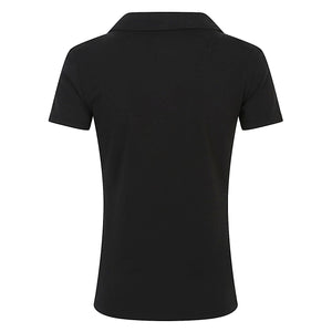 Black polo shirt, half sleeves, patch pocket on the chest, straight hem. Cotton polo shirt Size and Fit - This piece fits true to size. We recommend you get your regular size. Model is 1,75m / 5ft 8in wearing size 40 (IT)