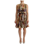 Dolce & Gabbana Beige Floral Sleeveless Round Neck Mini Dress