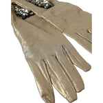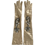 Dolce & Gabbana Beige Satin Crystal Elbow Length Gloves