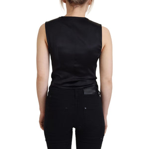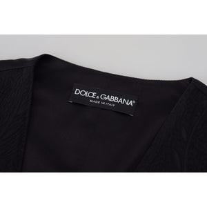 Dolce & Gabbana Black Brocade Button Down Sleeveless Vest Top