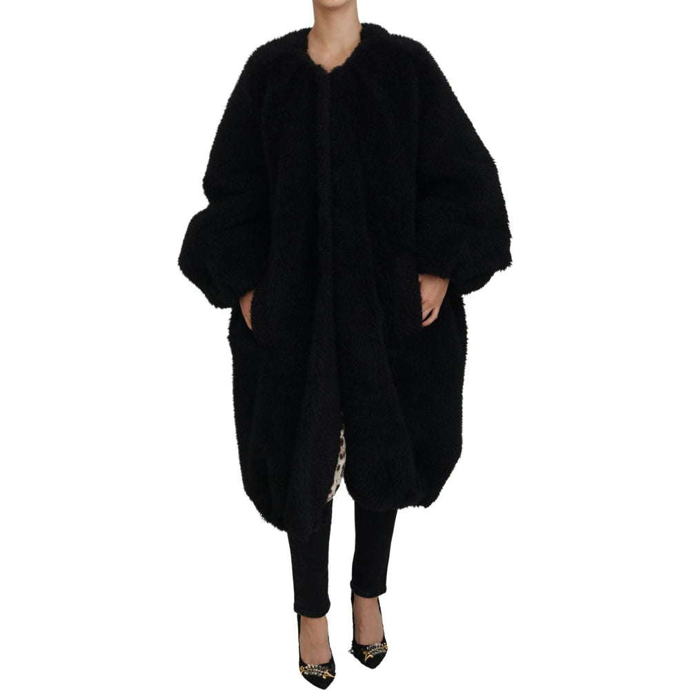 Dolce & Gabbana Black Cashmere Blend Faux Fur Coat Jacket
