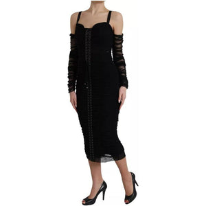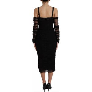 Dolce & Gabbana Black Cold Shoulder Stretch Tulle Midi Dress