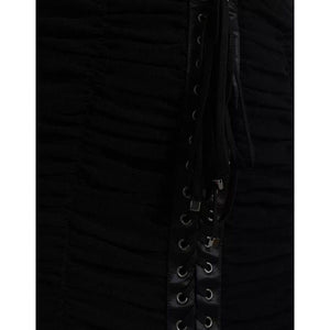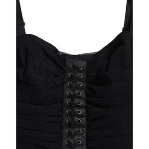 Gorgeous, 100% Authentic Dolce & Gabbana bustier dress, with a lingerie-inspired lace-up front, this cold-shoulder version has been made in Italy from ruched stretch-tulle and has a boned bodice and sheer sleeves.