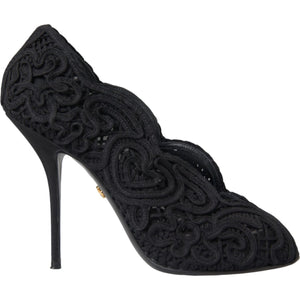 Dolce & Gabbana Black Cordonetto Ricamo Pump Open Toe Shoes
