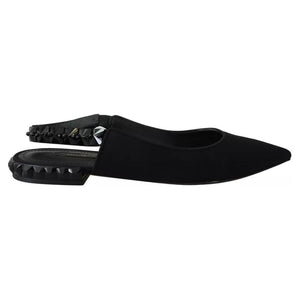 Dolce & Gabbana Black Flats Crystal Slingback Charmeuse Shoes