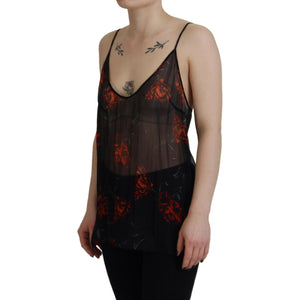 Dsquared² Black Floral Print Spaghetti Strap Tank Blouse Top
