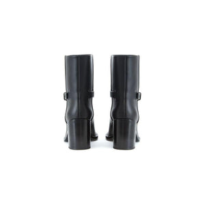 Burberry leather ankle boots in black, buckle ankle strap with logo print, round toe. Composition: 100% Leather-Interior zip:23GIU146-150