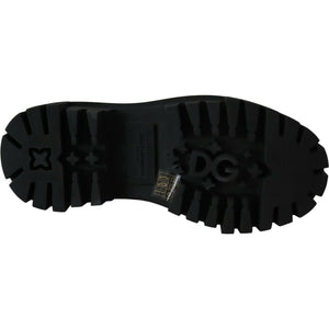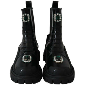 Dolce & Gabbana Black Leather Crystal Combat Boots