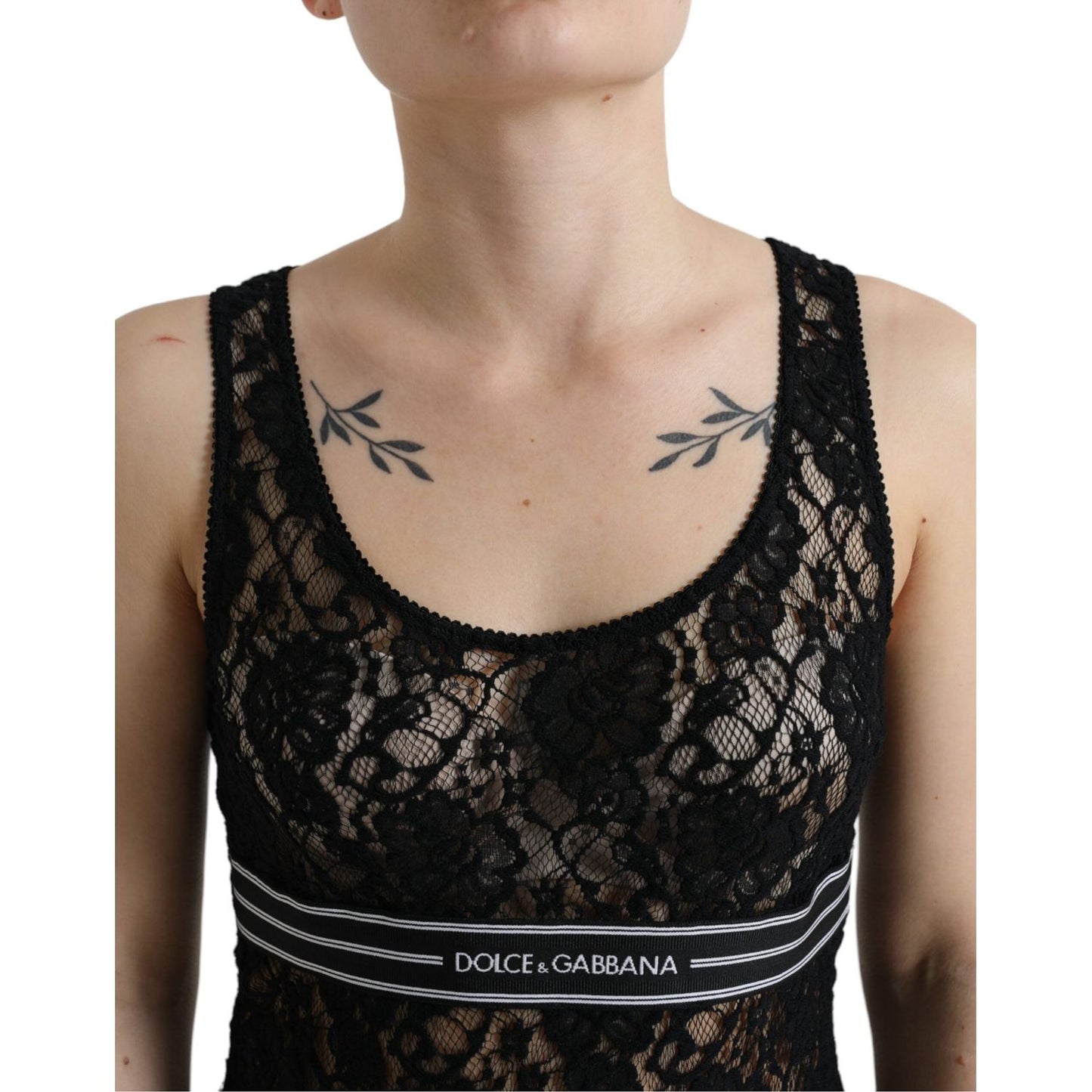 Dolce & Gabbana Black Logo Stripe Lace Sleeveless Tank Top