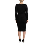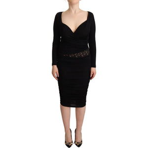 GF Ferre Black Long Sleeves Sweetheart Neck Midi Dress