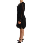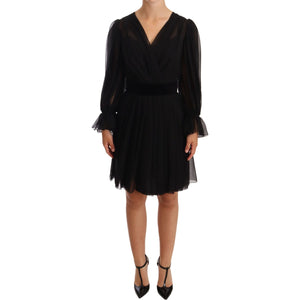 Dolce & Gabbana Black Mesh Pleated Mini Silk Stretch Dress
